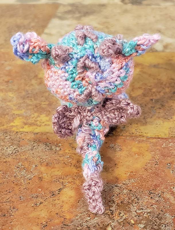 Early last year when I first started crocheting again and had posted a few pictures of amigurumi, two different friends of mine sent me a picture of this little baby dragon. I found the pattern here. It was designed to be made with sewing thread!! It is incredibly tiny! I sat on the pattern for several months because I just wasn’t sure I could do it using thread as suggested.